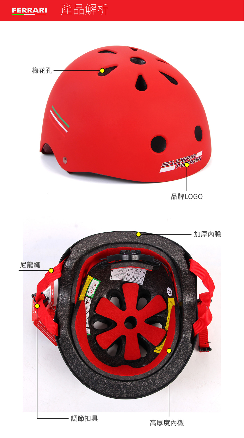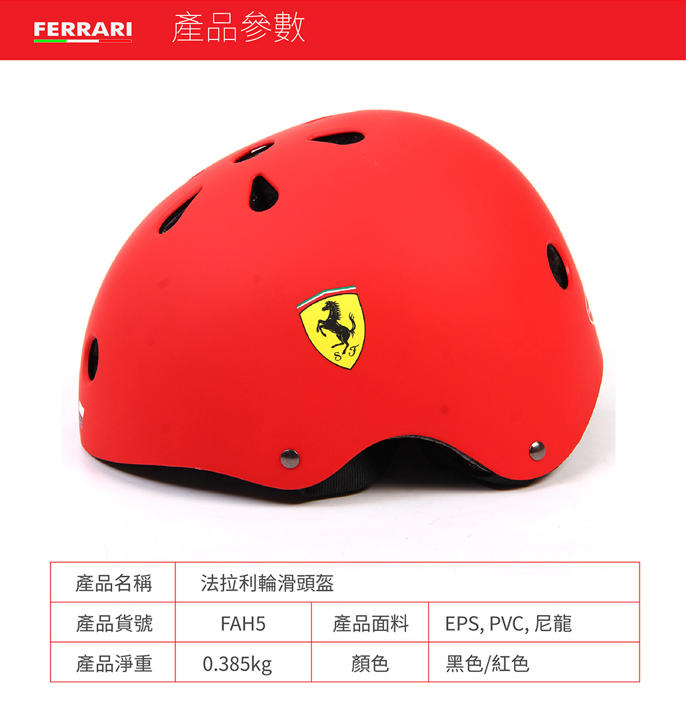 ◆ 品名:法拉利防護頭盔 ◆ 品牌:Ferrari 法拉利 ◆ 產品分類:頭盔 ◆ 產品貨號:FAH5 ◆ 商品淨重:0.385KG ◆ 產品顏色:白色 ◆ 產品材質:PP,尼龍 ◆ 頭圍:57-58 CM / 尺寸:M ◆頭圍:55-56 CM / 尺寸:S