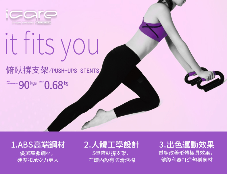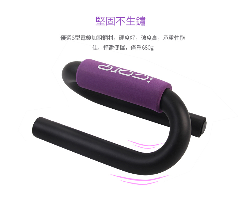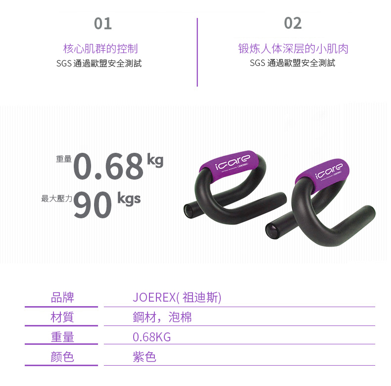- 品牌: I CARE - 型號: JBN8788 - 材質: 鋼材,泡棉 - 重量: 約0.68KG - 最大承受壓力: 約90KG - 顏色: 紫色 - 產地: 中國