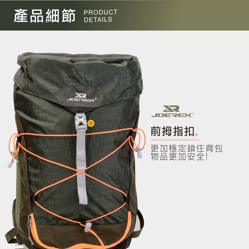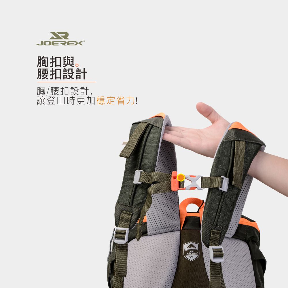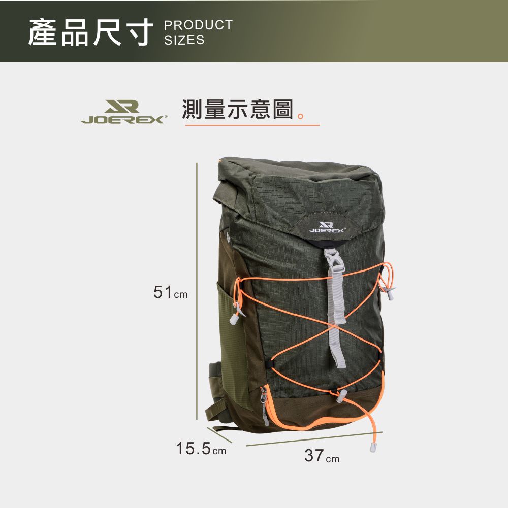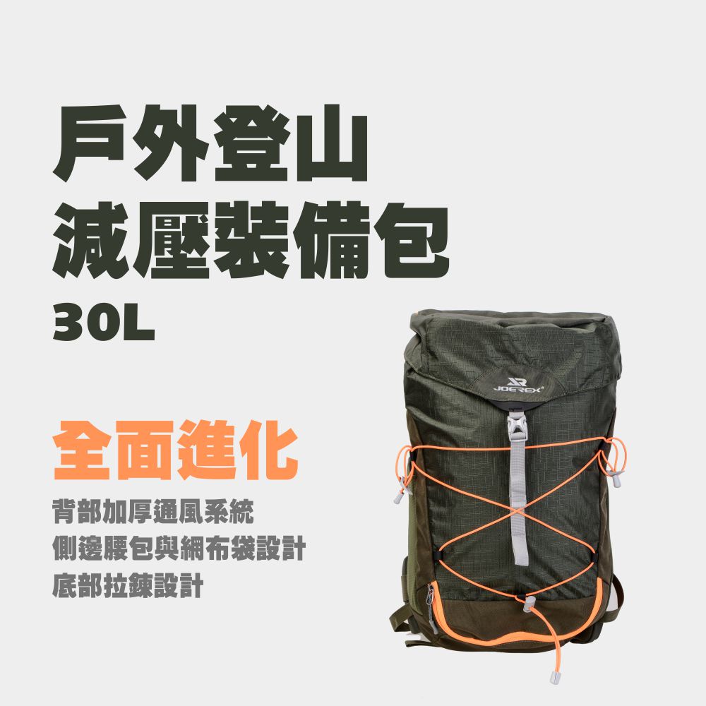 -品名:戶外登山減壓裝備包 -品牌:JOEREX -容量:30L -貨號:JHC19061 -尺寸:約 37*15.5*51CM -顏色:綠色 -材質:防水滌綸 -產地:中國