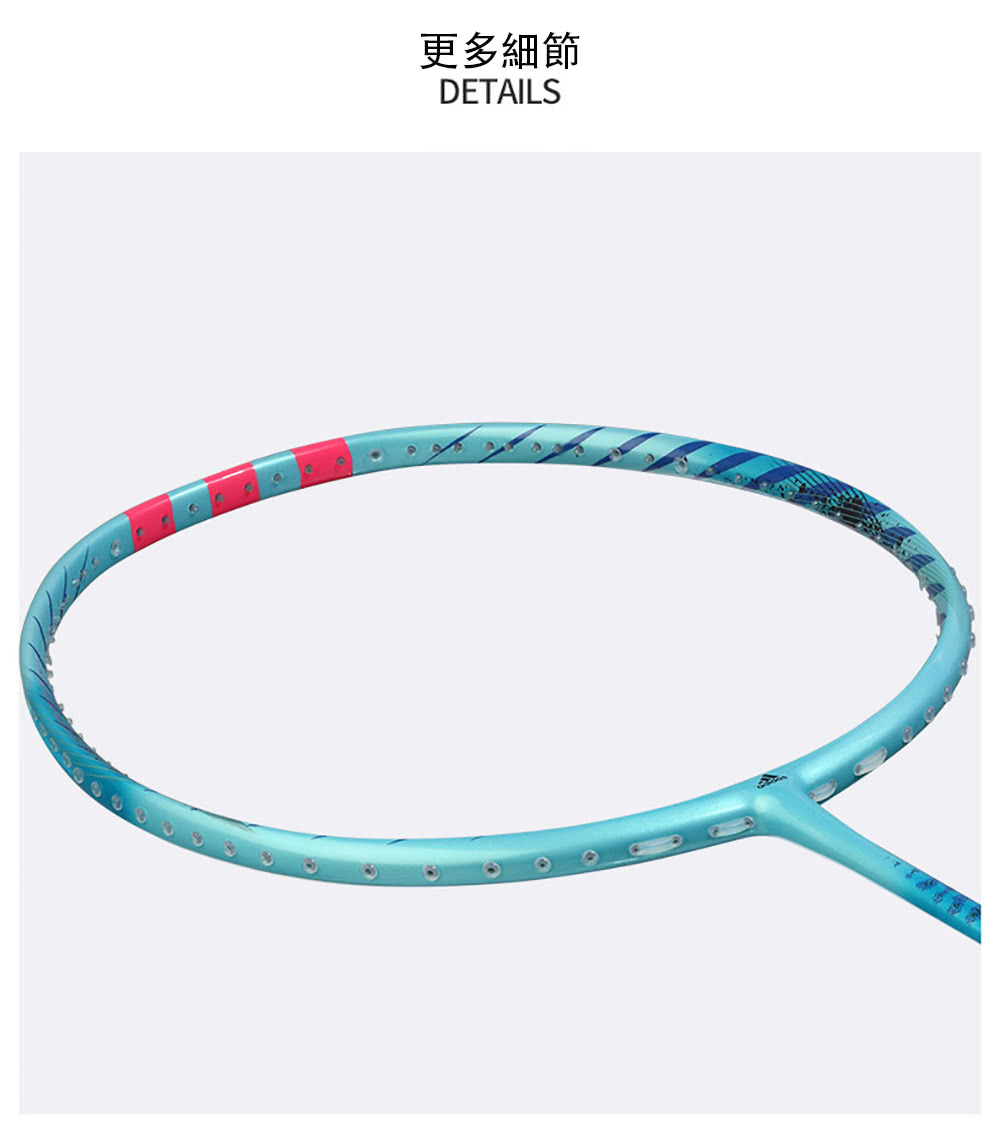 -品牌: ADIDAS 愛迪達 -貨號: RK606501 -型號: W09 -羽毛球打法分類: 控球型(防守兼備) -拍杆硬度: 稍硬 -重量:82g ±2g G5 -平衡點:285~295mm -中管硬度:8.0~8.5 -球拍總長:675mm -木柄尺寸:G5/3~2/8inch -穿線磅數: ≦28 lbs/12.0kg -建議穿線磅數:28lbs -產地:中國