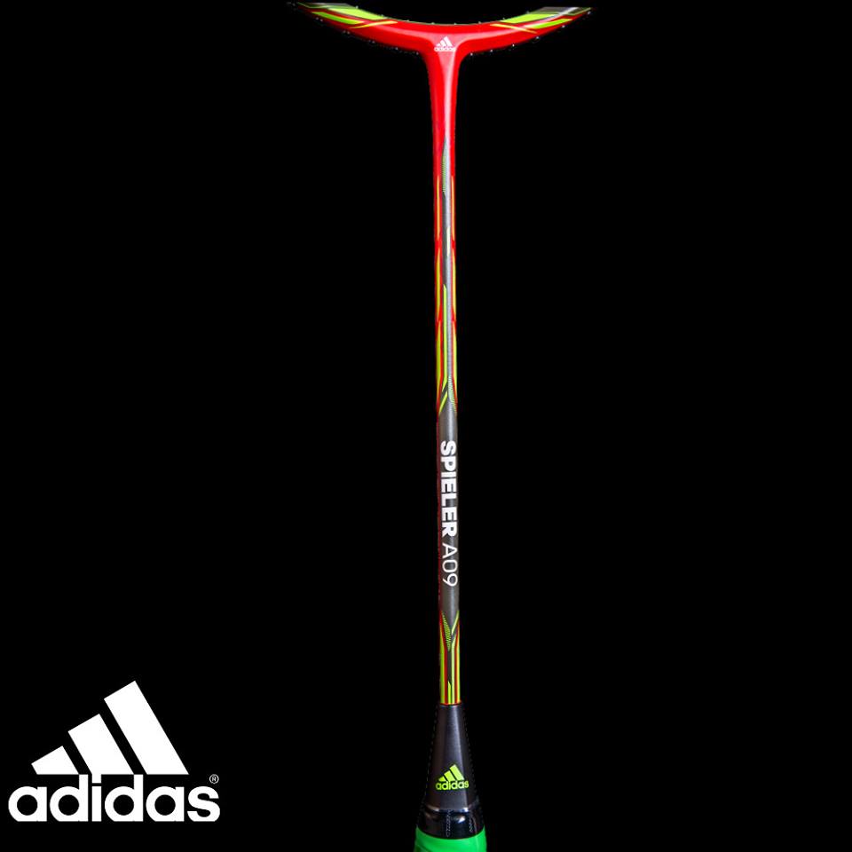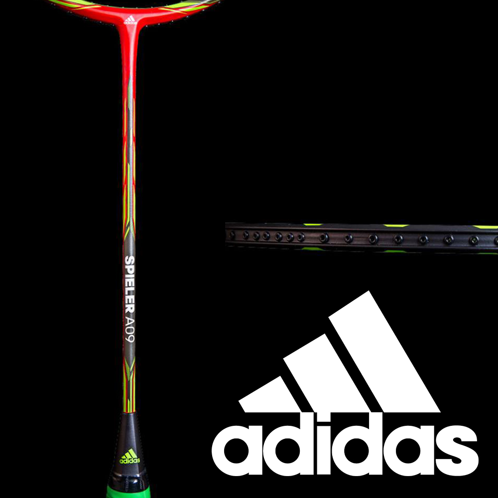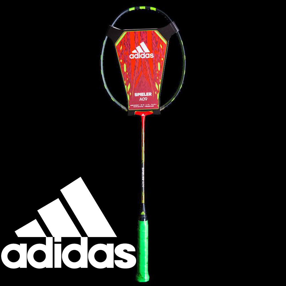 Adidas Spieler A09 Core Red (附原廠拍袋) -型號:A09 Core Red -品牌:Adidas -重量:84+-2g -內部編號:1C01000077 -尺寸:675mm -狀況:新品 -材質:奈米管,奈米樹脂,高鋼性碳纖維 -產地:中國 -平衡點:290-295mm -中桿軟硬度:M -穿線磅數:?28磅