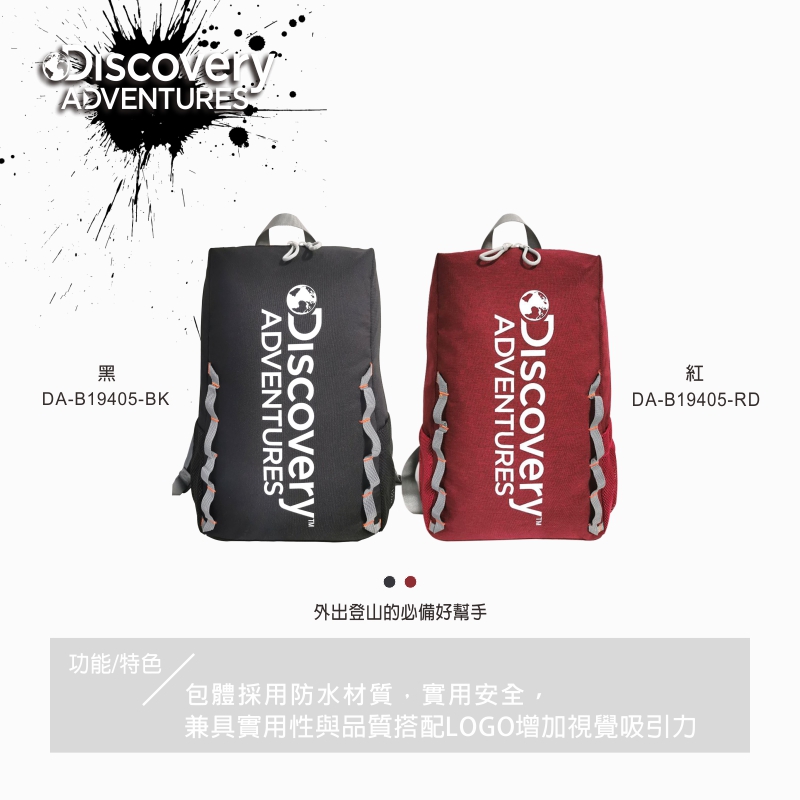 - 品牌:Discovery Adventures - 品名:輕便登山後背包 - 商品系列:戶外登山系列 - 產品貨號:DA-B19405-BK / DA-B19405-RD - 顏色:紅色/黑色 - 材質:聚酯纖維 - 尺寸:約 26*12*39.5cm - 容量:約 18公升